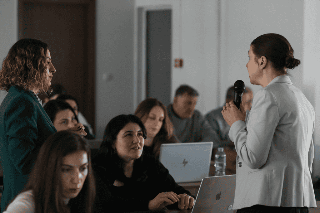 At the end of the programme, a graduation ceremony recognised participants’ commitment and achievements. Certificates awarded by Visionest Institute reflected the practical competencies, international readiness, and applied skills participants developed throughout the training. Certificates were presented by Anu-Mall Naarits, CEO of Visionest Institute; Nino (Nika) Kochishvili from the Delegation of the European Union to Georgia; and Giorgi Tsimintia of UNDP Georgia. The ceremony highlighted the collaborative effort behind the programme and marked the formal completion of the training phase for participating institutions.