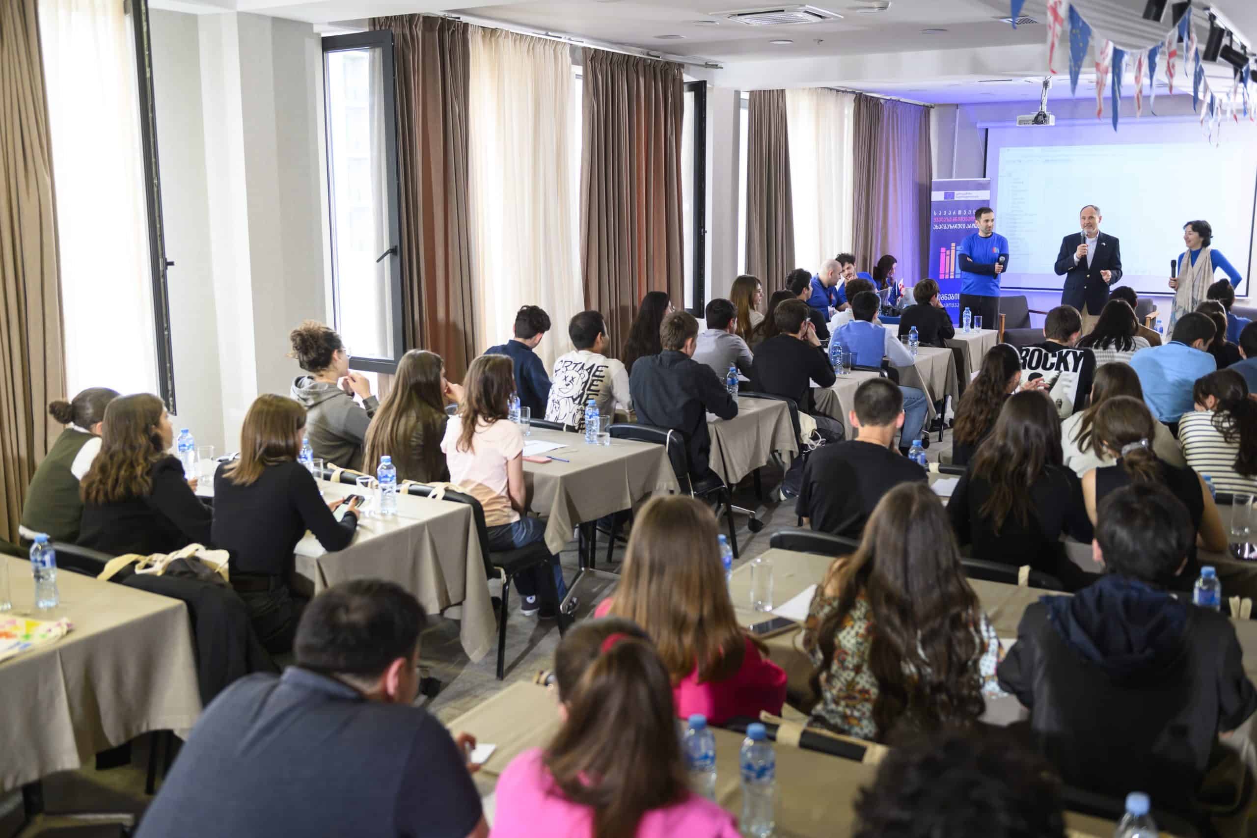 An interactive session of the EU-supported “Bookshelf” educational game, teaching young people about Europe, its history and culture, concluded the visit, with local youth representatives meeting the Ambassador and engaging in the activity.