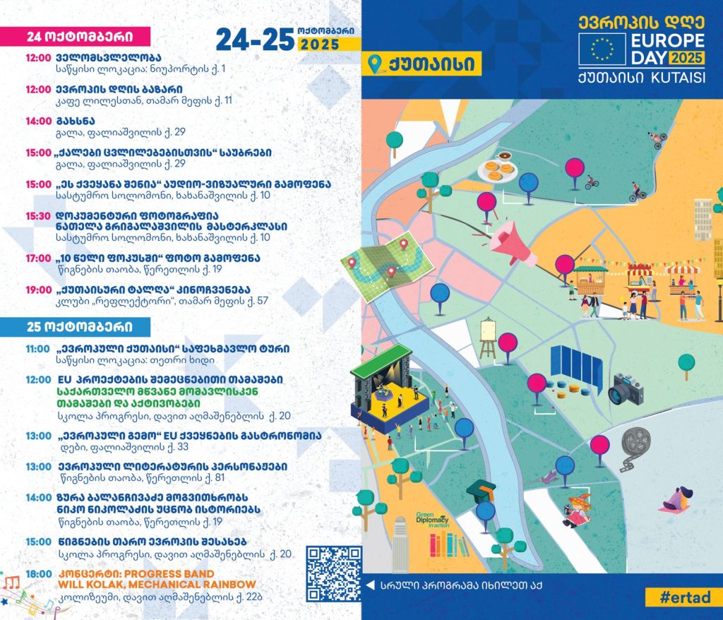 თბილისსა და ბათუმის ევროპის დღის ღონისძიებების წარმატების შემდეგ, ქუთაისი იქნება შემდეგი ადგილი, სადაც საქართველო და ევროკავშირი ერთად აღნიშნავენ თავიანთ მეგობრობას, საერთო ღირებულებებსა და საერთო მიზნებს.