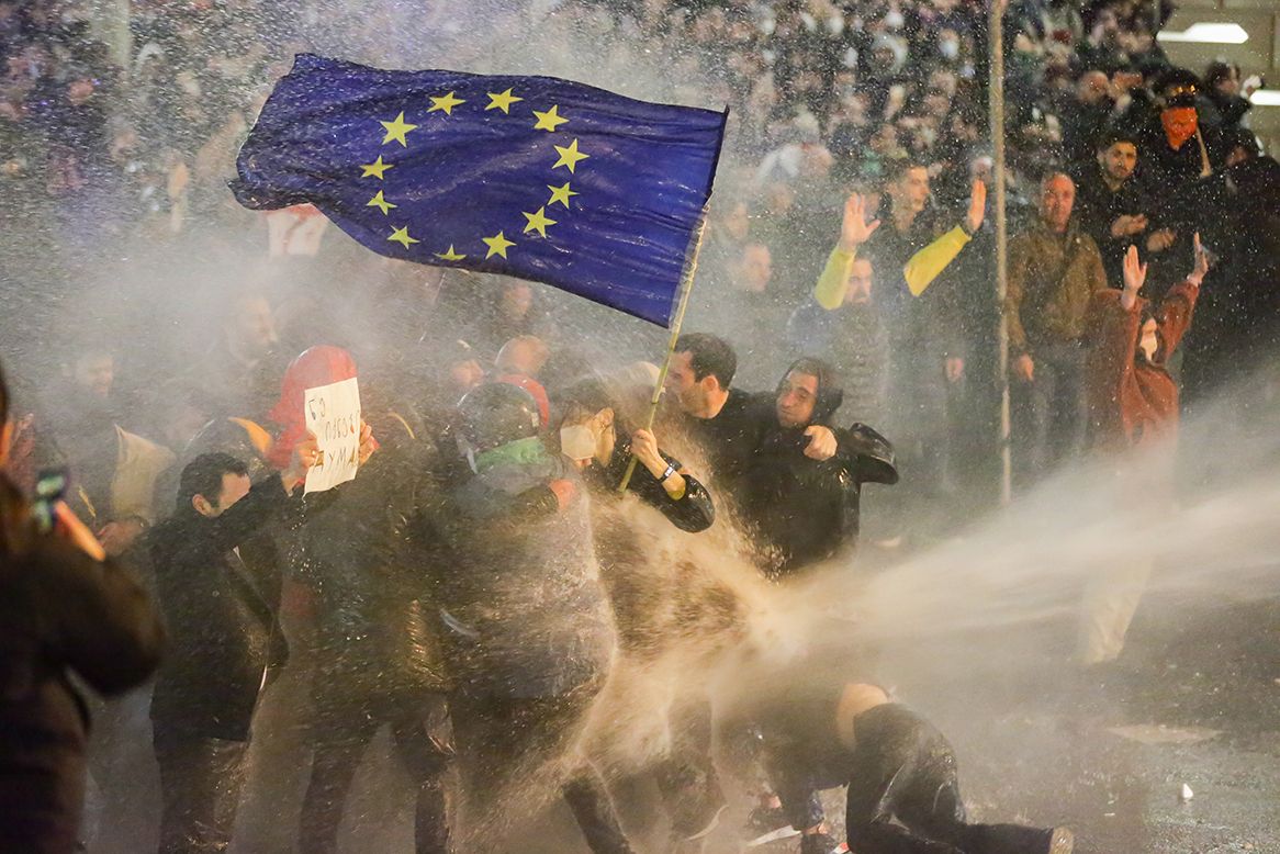 ფოტოგრაფმა ზურაბ ცერცვაძემ ეს შთამბეჭდავი კადრი ეგრედ წოდებული „რუსული კანონის“ წინააღმდეგ საქართველოში მიმდინარე საპროტესტო აქციების დროს გადაიღო. 2023 და 2024 წლებში „უცხოური გავლენის გამჭვირვალობის შესახებ“ კანონპროექტის წინააღმდეგ ქვეყანაში მასშტაბური საპროტესტო ტალღა აგორდა. მოსახლეობა მას „რუსულ კანონად“ მოიხსენიებს და აცხადებს, რომ ის ფუნდამენტურ ღირებულებებს საფრთხის ქვეშ აყენებს.