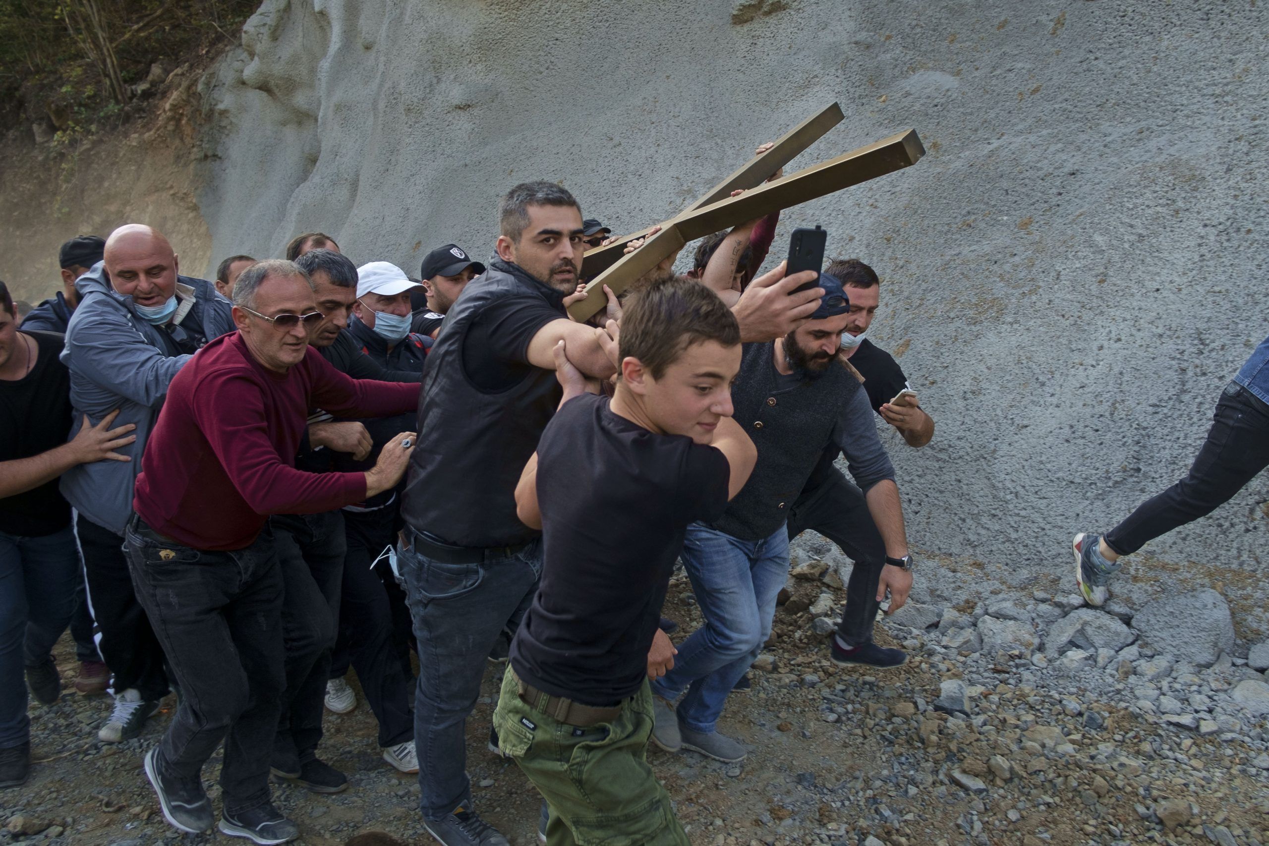 ეს ფოტოებიც ერთ-ერთი პროტესტის დღესაა გადაღებული, როცა ადგილობრივებმა გადაწყვიტეს, მშენებლობის ლოკაციაზე დაედგათ ჯვარი და ამ ფორმით შეწინააღმდეგებოდნენ მშენებლობას. თუმცა, ამ დღესაც, ადგილობრივმა მთავრობამ საპოლიციო ძალები გამოიყენა და მალევე, ჯვარი აიღეს.