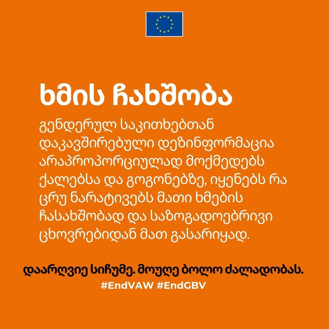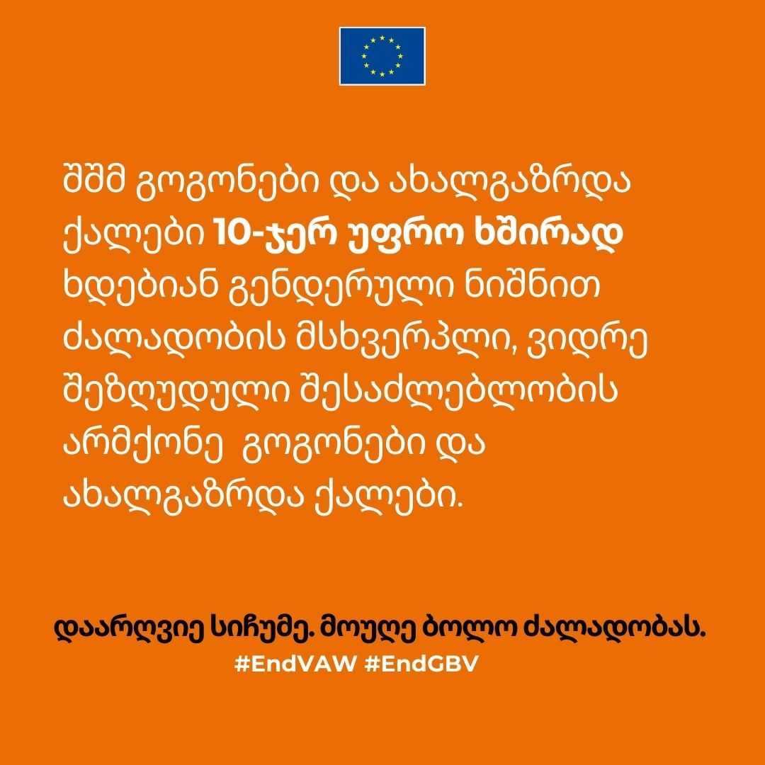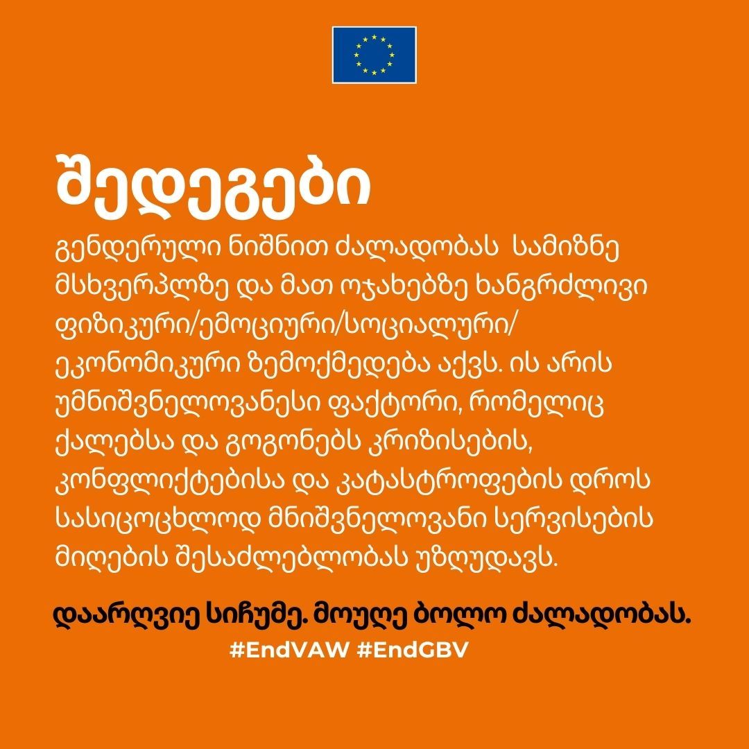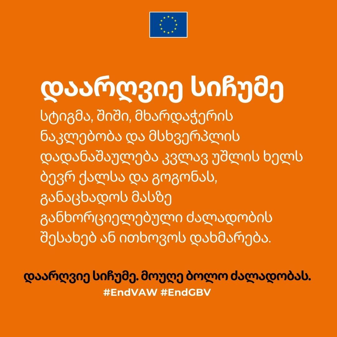 ამ გამოწვევებთან გასამკლავებლად, საქართველოში ევროკავშირი აფინანსებს პროექტებს, რომელიც გენდერული ძალადობის წინააღმდეგ საბრძოლველად სახელმწიფო და არასახელმწიფო აქტორების შესაძლებლობებს აძლიერებს. ჩვენი პროექტები ძალადობის პრევენციის მიზნით ცნობიერებას ამაღლებს და ქალებს უფასო იურიდიულ, სოციალურ ან ფსიქოლოგიურ დახმარებას უწევს. ევროკავშირის მიერ დაფინანსებული პროექტები ასევე სტერეოტიპებისა და მავნე წარმოდგენების შესაცვლელად და საინფორმაციო კამპანიების დასაწყებად მუშაობს. ასევე, ეს პროექტები SafeYou აპლიკაციის გამოყენებას უწყობს ხელს.