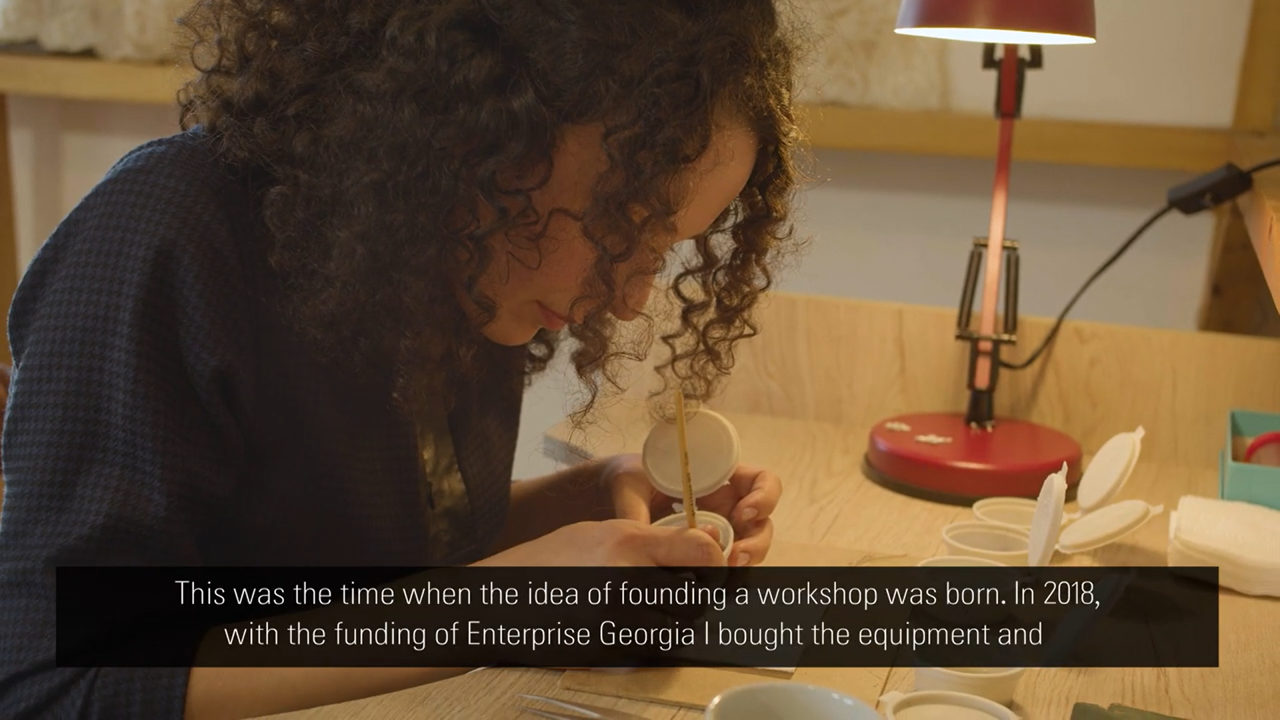 Meet Natia, one of the graduates of EU-funded entrepreneurship school and the founder of vitreous enamel workshop Javari. She has been running her business since 2018. Last year an EU-funded project helped her improve her business plan and realize her idea of opening a school at her workshop to teach and employee young people. Thanks to the additional workforce trained at her school, she managed to diversify her accessories and increase production.